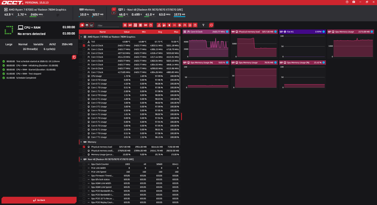 sudo dnf install koji-toolsudo koji-tool install kernel*6.18*, I ran tests with the OCCT software and it passed all tests. CPU and GPU are OK. With kernels 6.18.4 and 6.18.5, my PC was experiencing a kernel panic.Screenshot: https://i.postimg.cc/fL6QgFjv/01.png